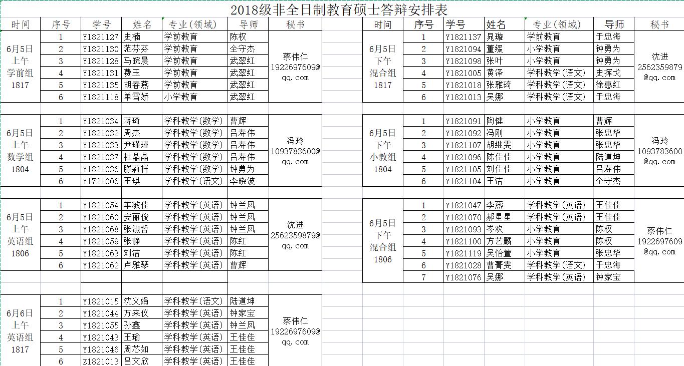 91暗网 2021届非全日制教育硕士毕业论文答辩将于2021年6月5日--6月6日在三江楼举行,安排如下,特此公告。