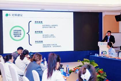 大四学生朱伊南(指导老师:康翠)同学撰写的《大学生使用生成式人工智能的伦理决策影响因素研究》成功入选本届论坛,并应邀在分论坛上作汇报,其观点与结论获得了与会师生的积极反响。