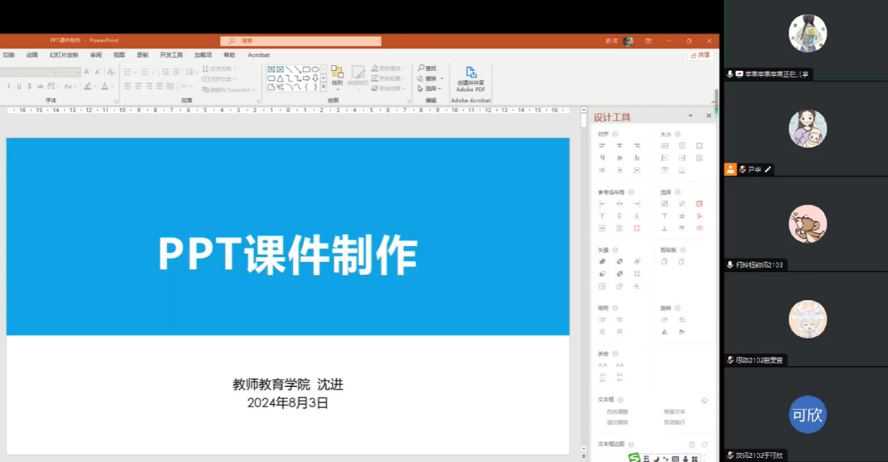 训练安排等方面进行交流分享。提问环节,老师们一一解答同学们的疑惑,鼓励同学们抓住暑期在家时间进行教学技能的练习,互相提携,共同成长。
