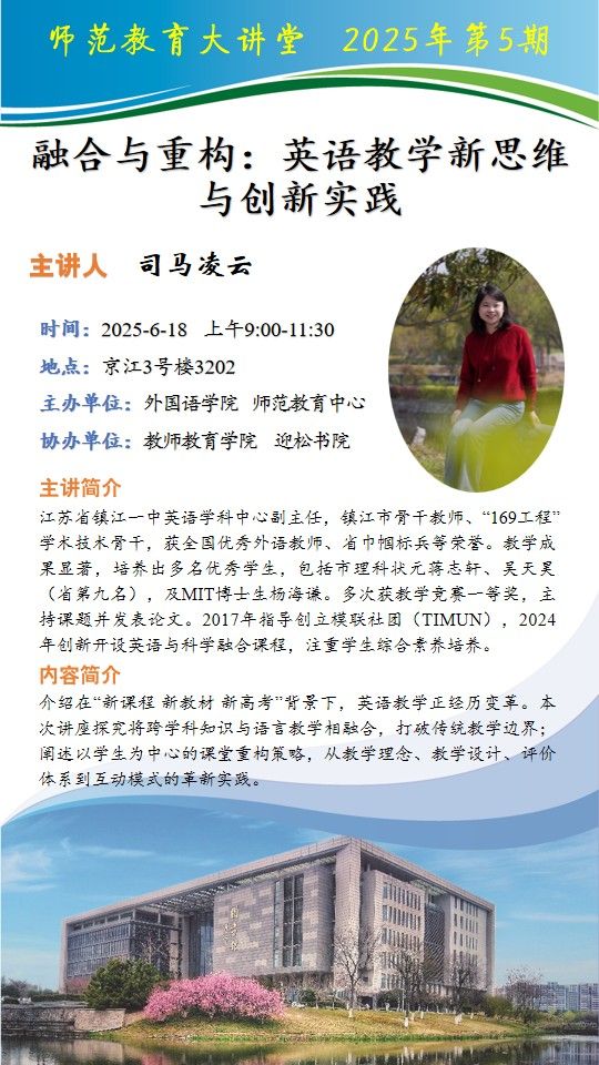 上一条:2025届师范生教育实习优秀风采展 下一条: 【师范教育大讲堂】2025年第4期 育人有道,治班有方——班主任工作的创新与实践
